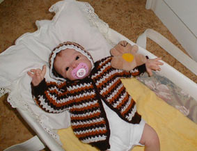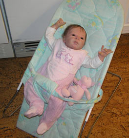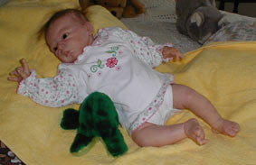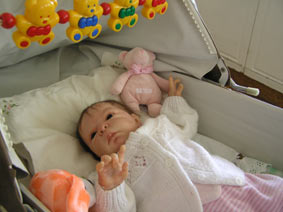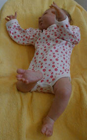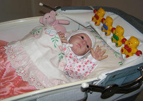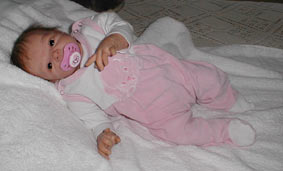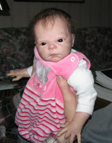 Min lilla otroligt söta Maylee är född 17/10 2012 o är 49 cm lång och väger 2 170 g o ser ut exakt som jag vill. Hon är jättefint rebornad av Marianne och kittet är "Sammie", skulpterat av Adrie Stoete.