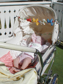 som bor i min gamla grå danska barnvagn PMK på vinden,