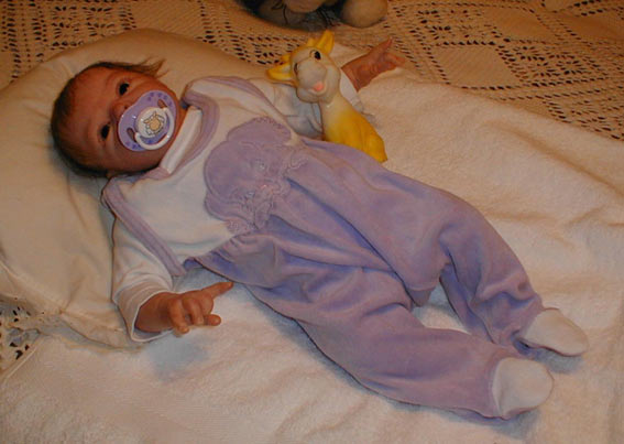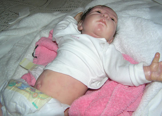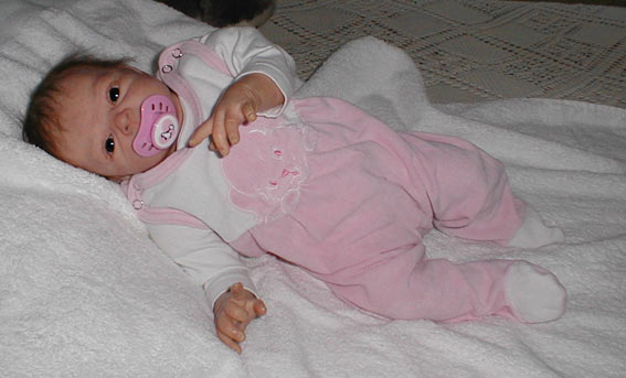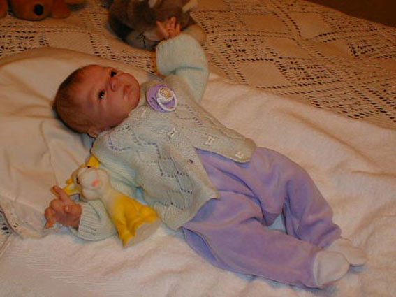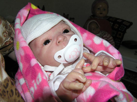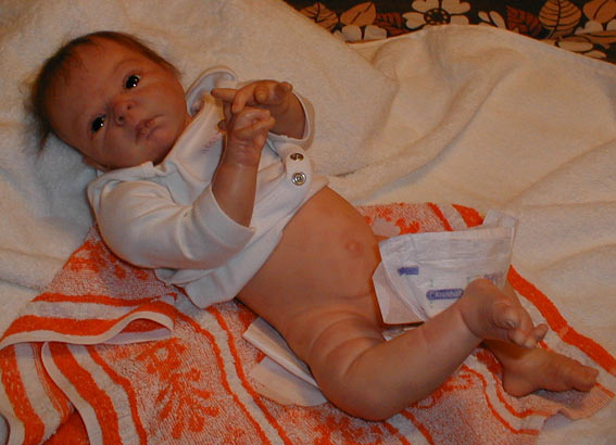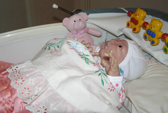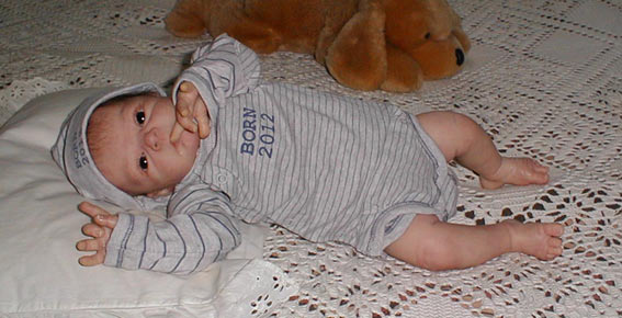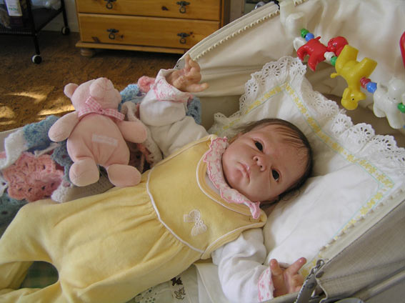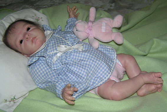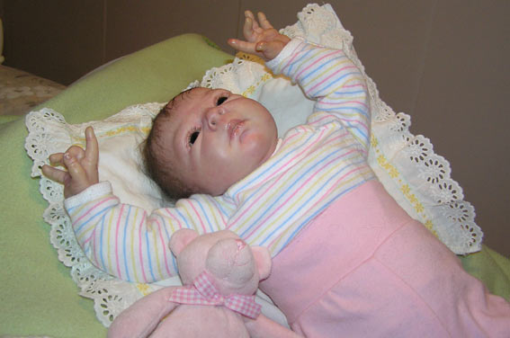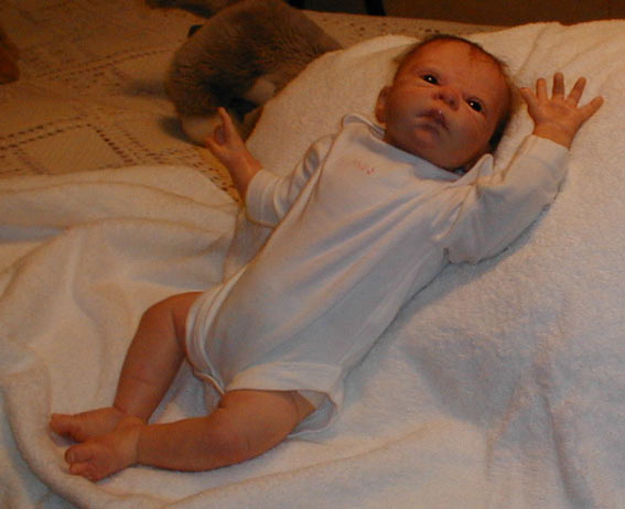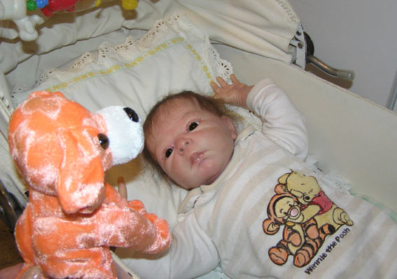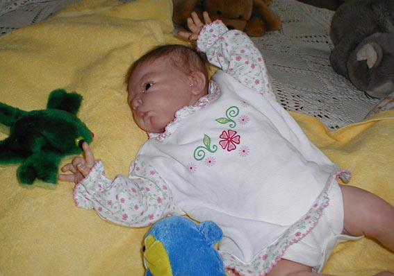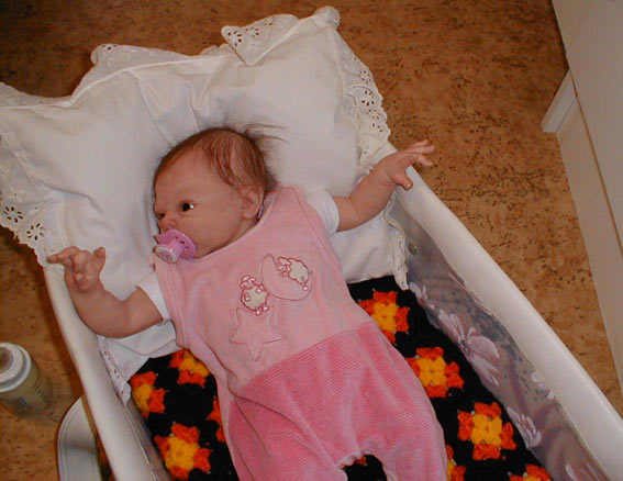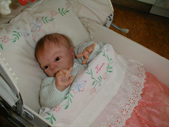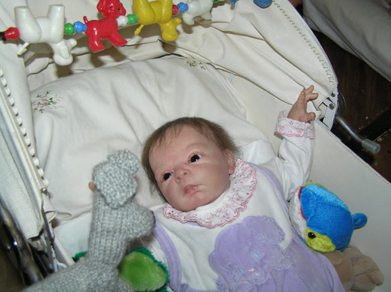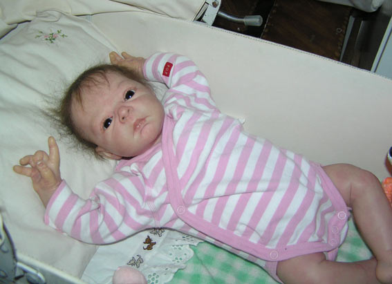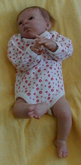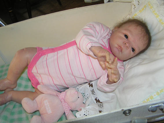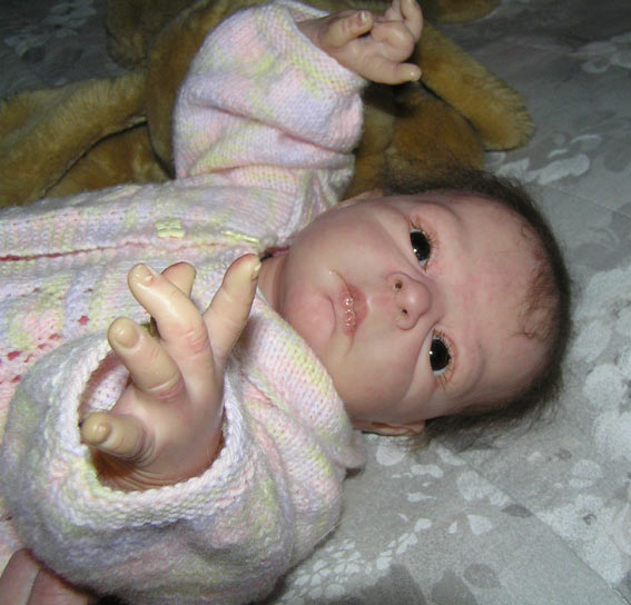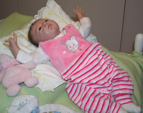 Min lilla otroligt söta Maylee är född 17/10 2012 o är 49 cm lång och väger 2 170 g o ser ut exakt som jag vill. Hon är jättefint rebornad av Marianne och kittet är "Sammie", skulpterat av Adrie Stoete.