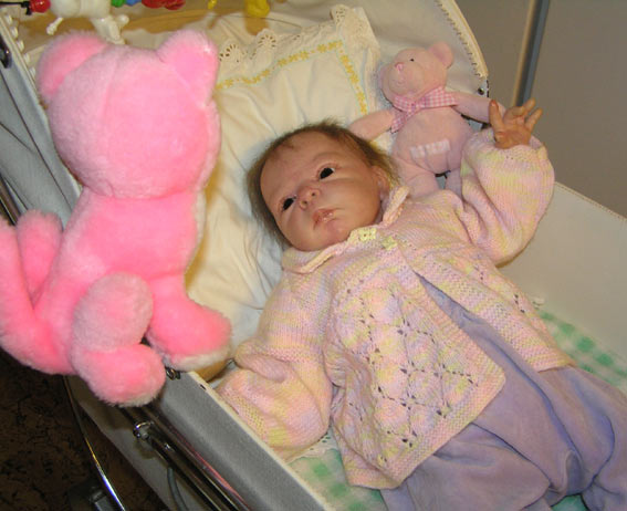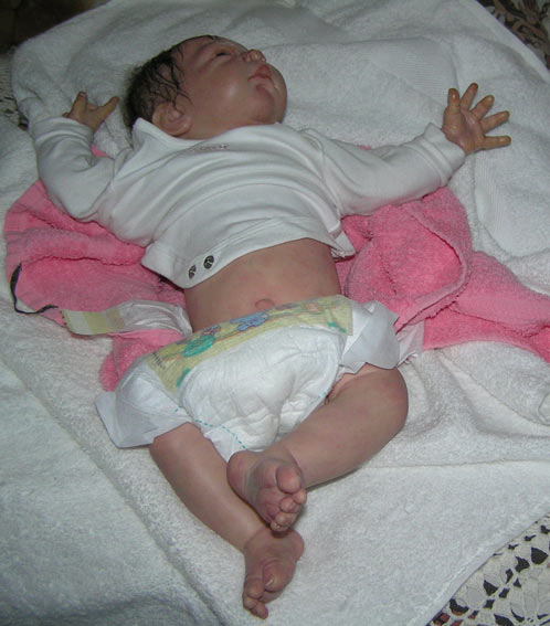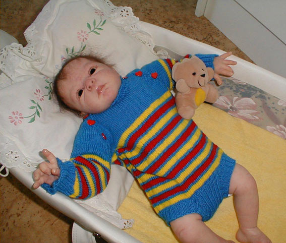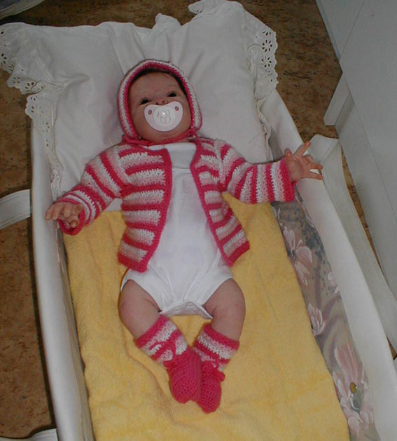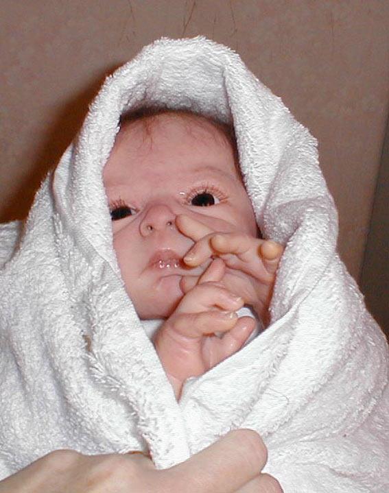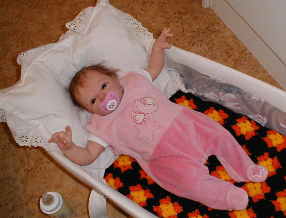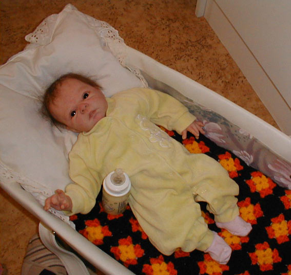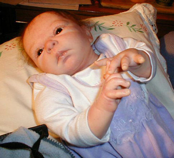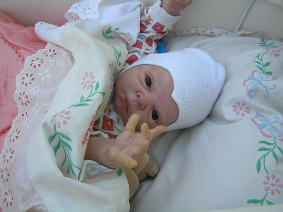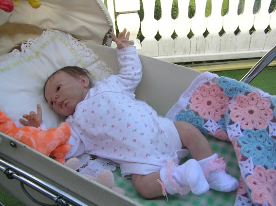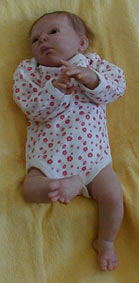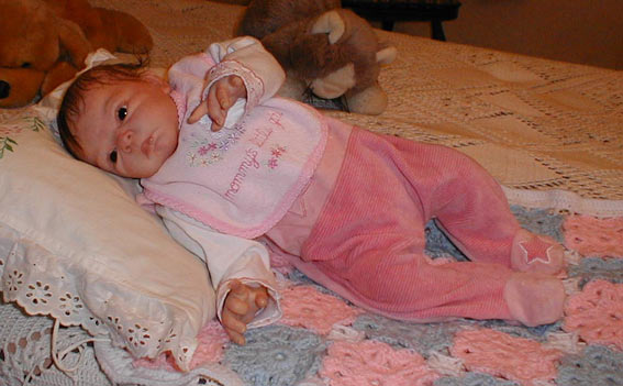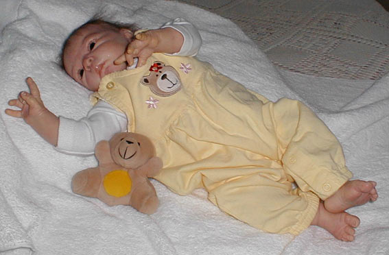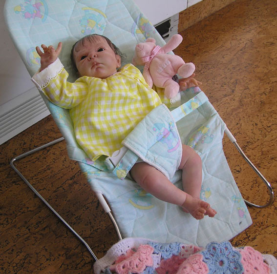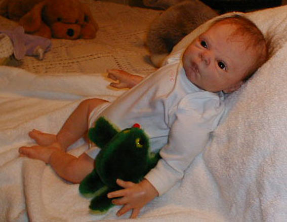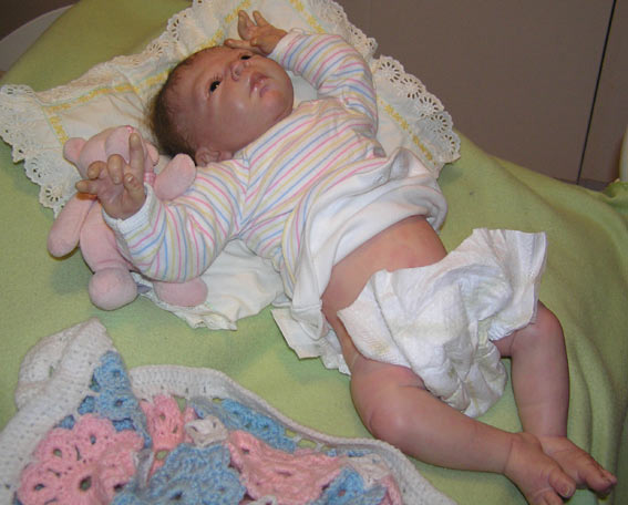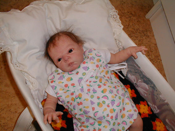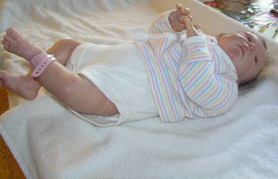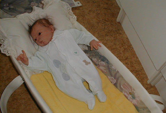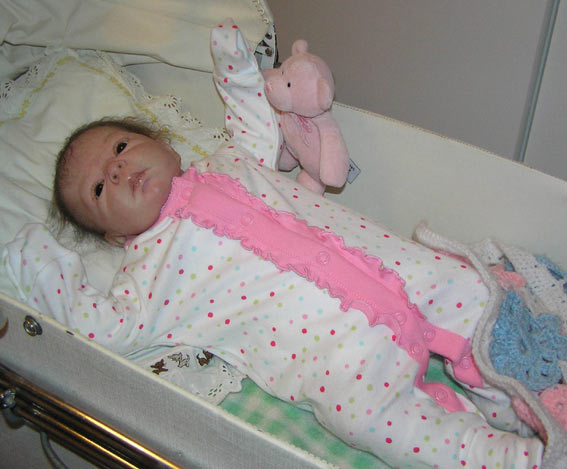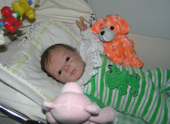 Min lilla otroligt söta Maylee är född 17/10 2012 o är 49 cm lång och väger 2 170 g o ser ut exakt som jag vill. Hon är jättefint rebornad av Marianne och kittet är "Sammie", skulpterat av Adrie Stoete.