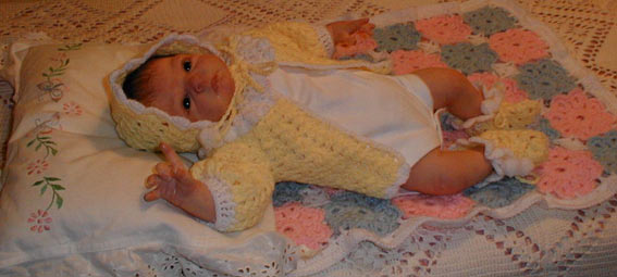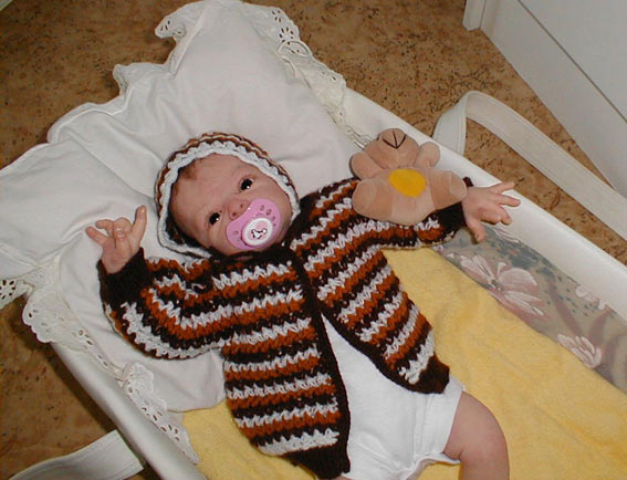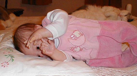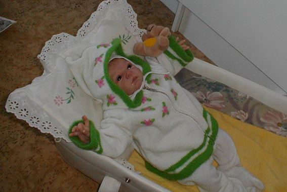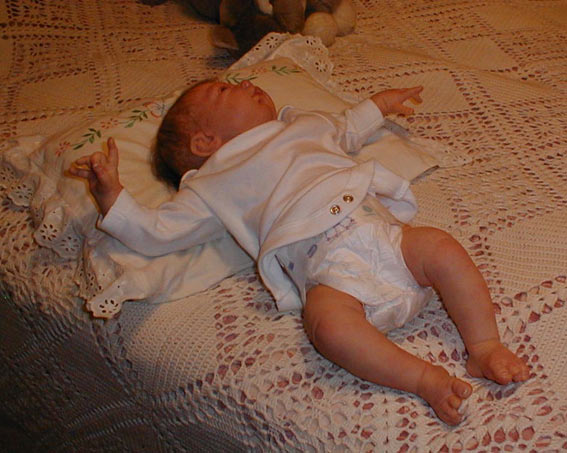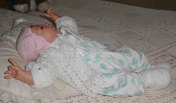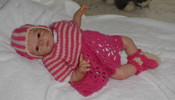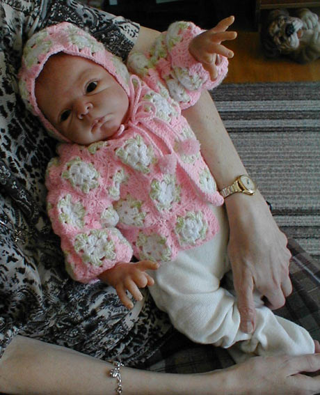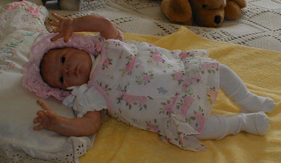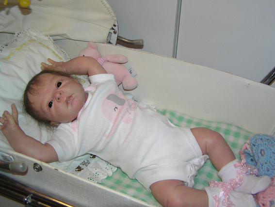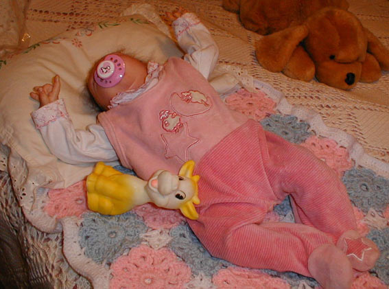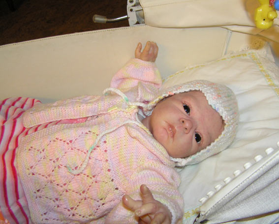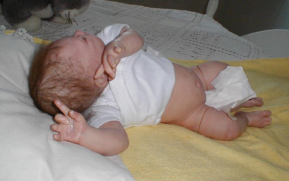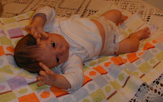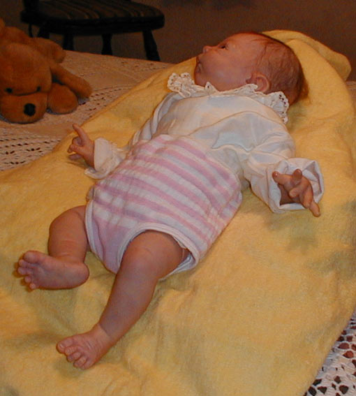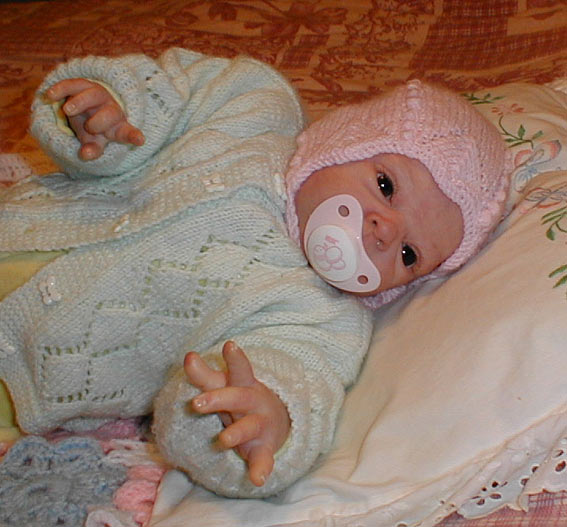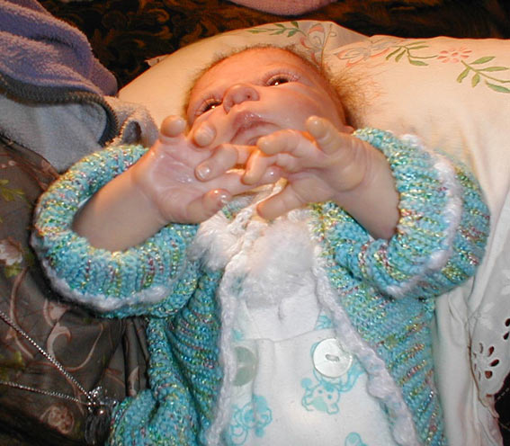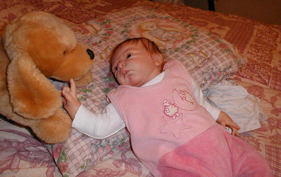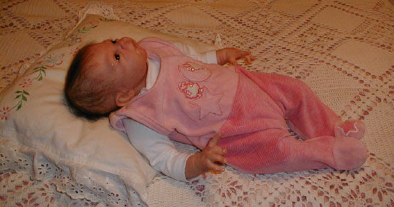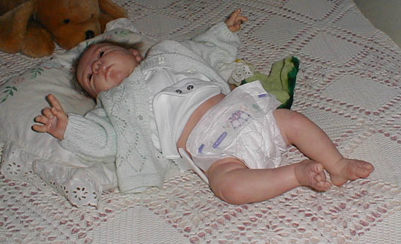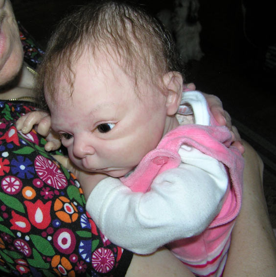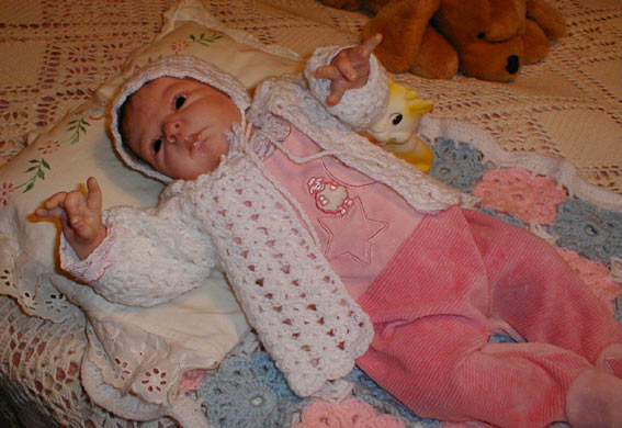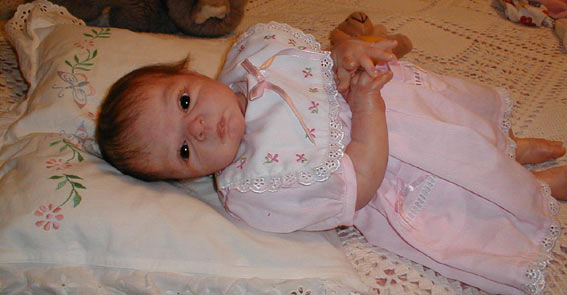 Min lilla otroligt söta Maylee är född 17/10 2012 o är 49 cm lång och väger 2 170 g o ser ut exakt som jag vill. Hon är jättefint rebornad av Marianne och kittet är "Sammie", skulpterat av Adrie Stoete.